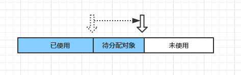 - 指针碰撞:假设 Java 堆中内存是绝对规整的,所有使用的内存放在一边,所有未被使用的内存放在另外一边,中间以指针作为分界点指示器。此时内存分配只是将指针向空闲方向偏移出对象大小的空间即可,这种方式被称为指针碰撞。