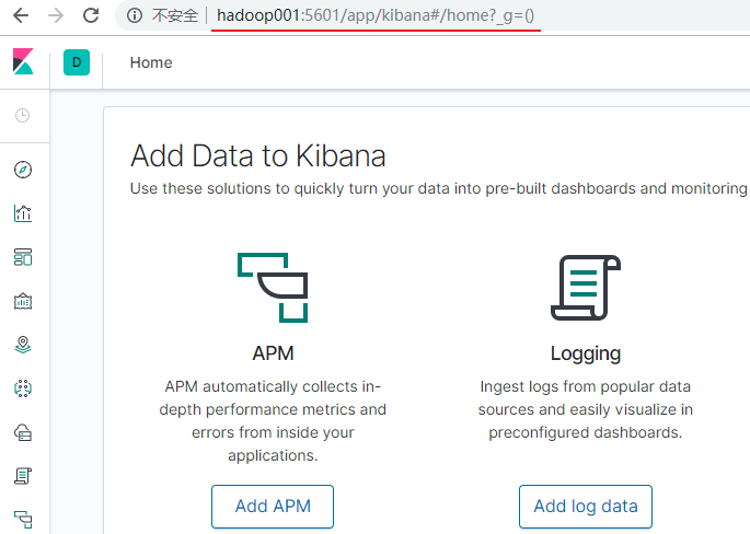 kibana Web UI 的访问端口号为5601,出现以下页面则代表启动成功: